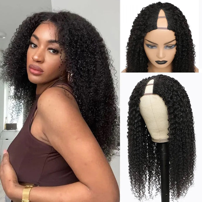 Black/1B 180% Density V Part Wig 4C Afro Kinky Curly Human Hair Wigs