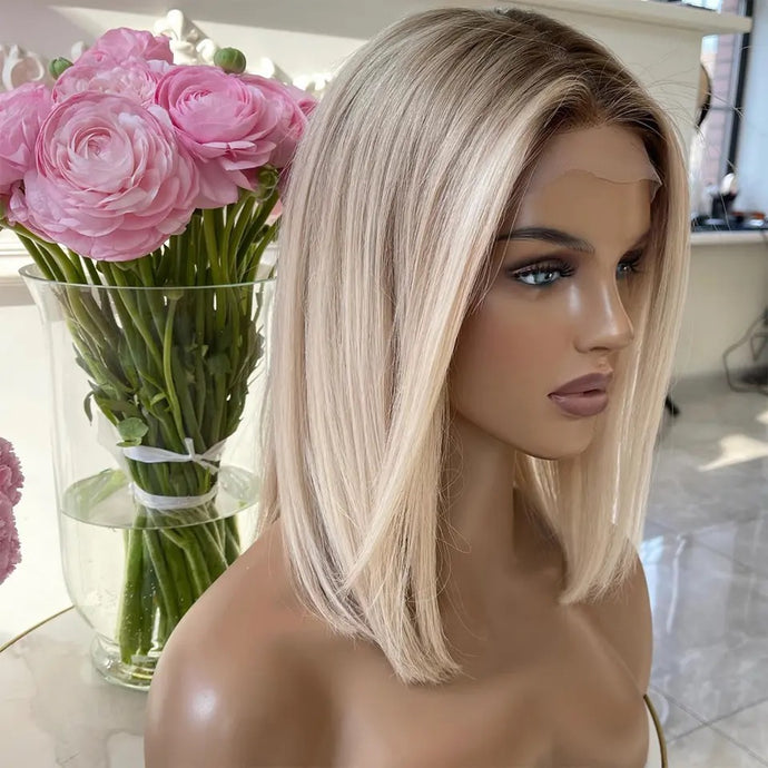 Blonde Bob Wig with Dark Roots Short Full Lace Human Hair Wigs 13x4/13x6/360 Glueless Straight Lace Front Wig Preplucked