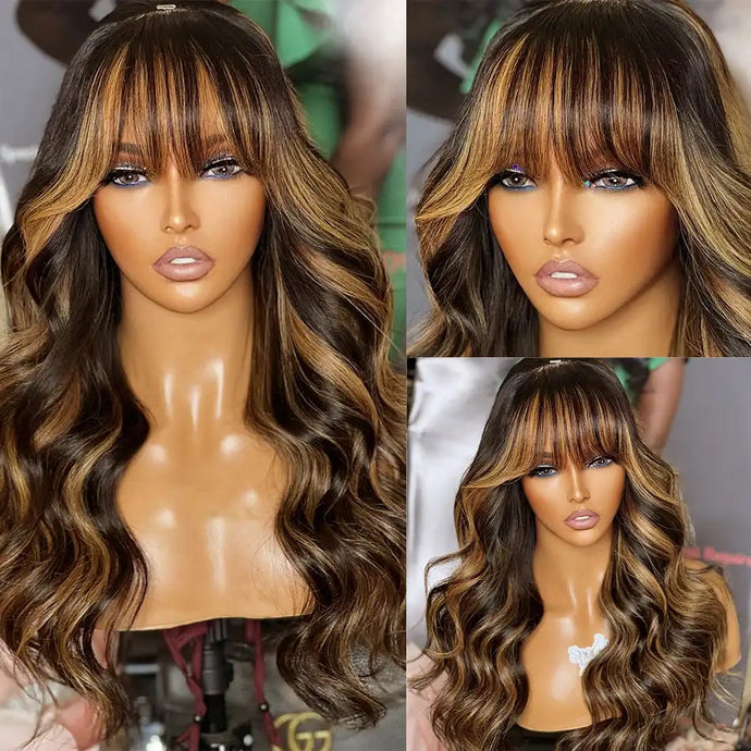 Body Wave Human Hair Wigs With Bangs Fringe Remy Human Hair Brazilian Wavy Wigs For Women Full Machine Made P1B/30