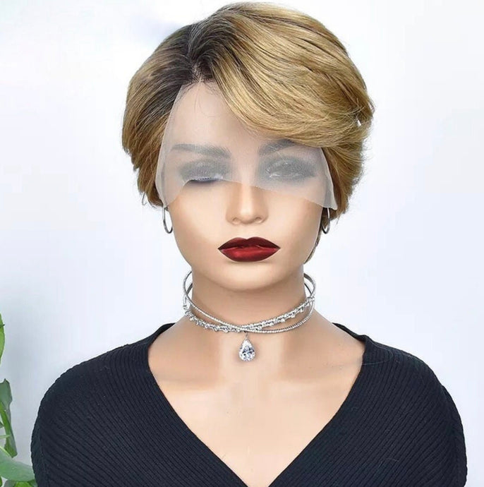 Blonde/ Black Hair T1B 27 Color Pixie Cut Bob Wig Brazilian Straight 13x5x1 T Part Lace Wig Short Bob Wigs Remy Human Hair Wigs