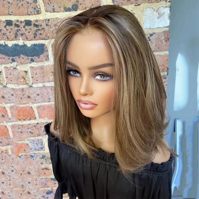 Brown Highlights Short Bob Wig Slight Wavy Full Lace Wigs 4x4/13x4/13x6 Virgin Human Hair Lace Front Wig 180%