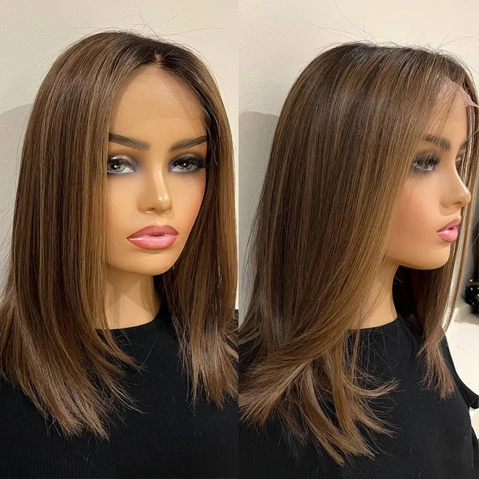 Chocolate Brown Highlights Caramel Dark Brown Roots 13x4/ 13x6 HD Lace Front Wig