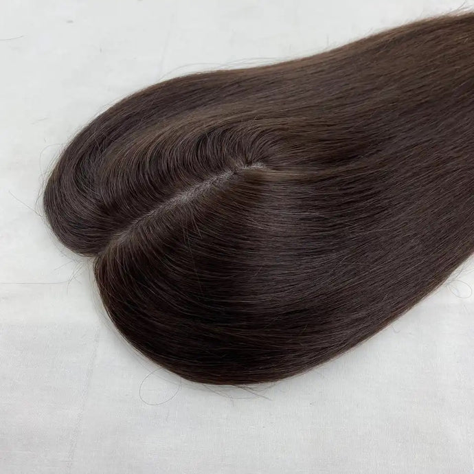 Brunette Human Hair Topper With 4 Clips In Silk Top Skin Base Virgin European Hair Toupee