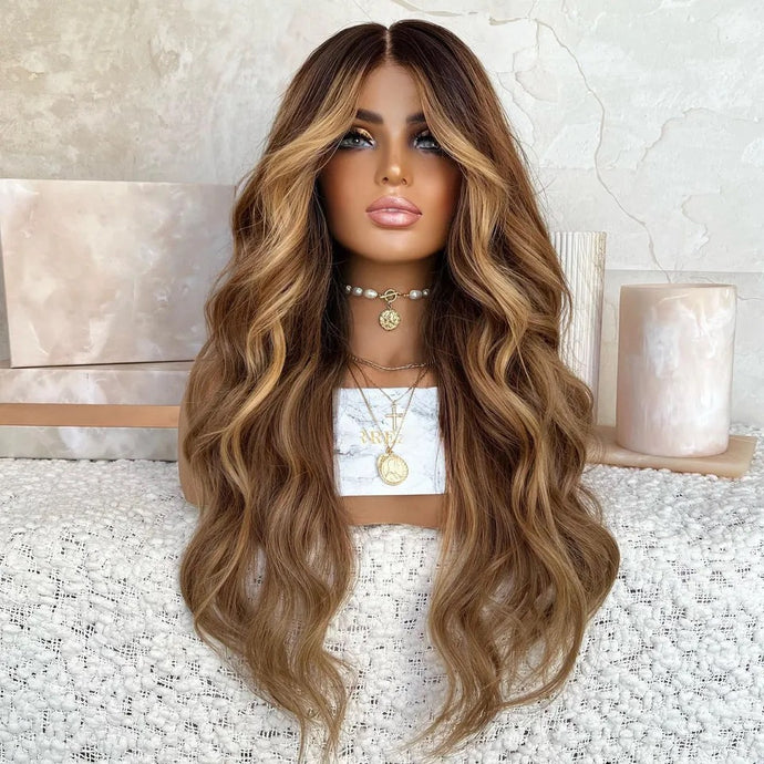 Highlight Brown Body Wave Lace Frontal Wigs Human Hair 13x4/13x6/360 Lace Front Wig Blonde Highlights Colored Body Wave