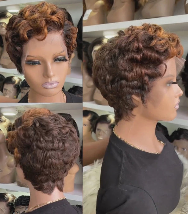 Highlight Colored Short Pixie Cut Bob Body Wave Human Hair Wigs Transparent T Part Lace Wigs Brazilian Hair 150%