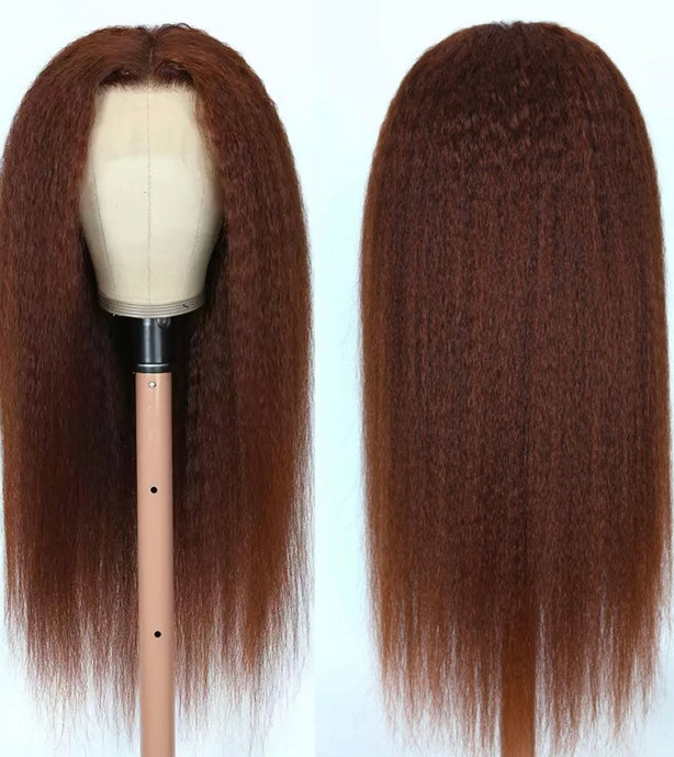 Reddish Brown Kinky Straight Lace Front Human Hair Wigs 13x4/ 13x6 Lace Front Wig Dark Auburn Copper Color Lace Wig