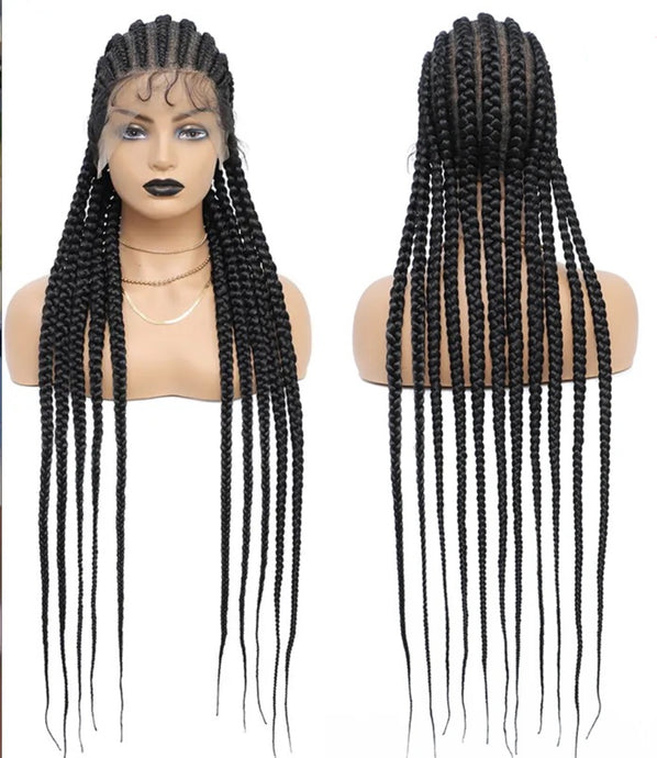 36 Inches Full Lace Box Braided Wig Cornrow Braids Lace Wigs Synthetic 360 Knotless Box Braids Lace Front Wigs
