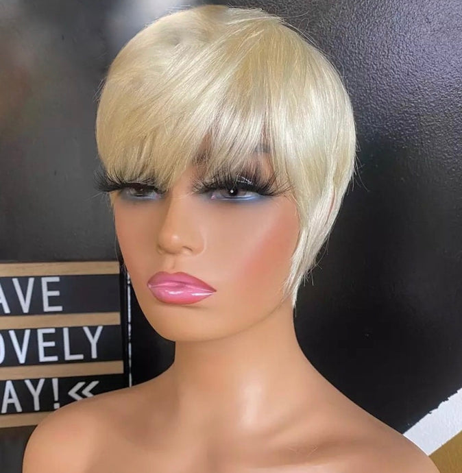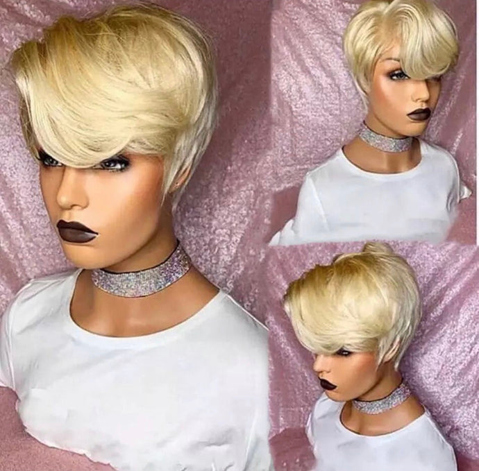 613/Blonde Pixie Cut Wig Human Hair Straight Glueless Short Pixie Cut Human Hair Wig Remy Hair