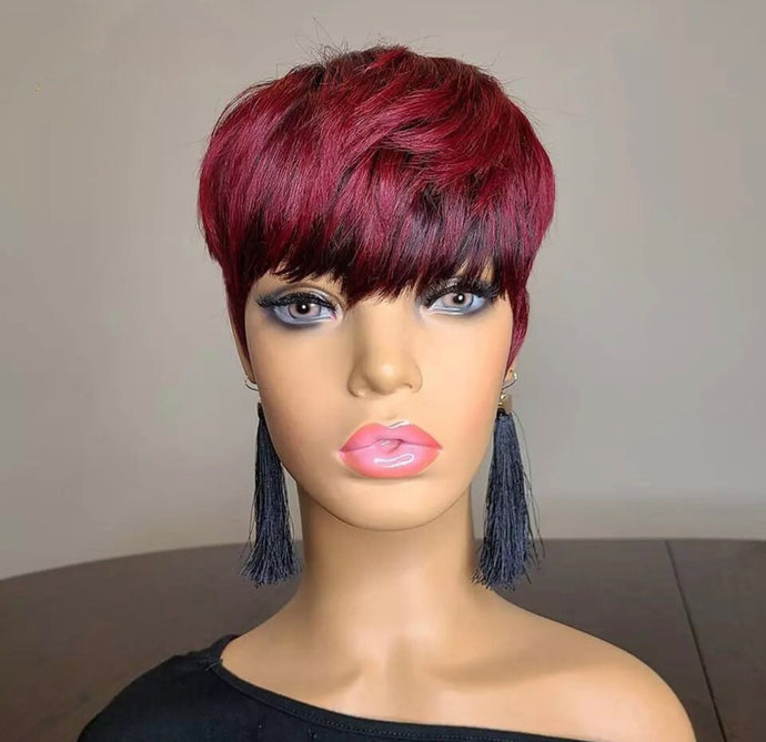99J Highlight Color Brazilian Human Hair Wigs With Bangs Pixie Short Cut Bob Wig Natural Wig Remy Hair Glueless