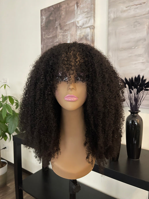 Afro Curly Human Hair Wig 180% Density No Lace Slip On and Go