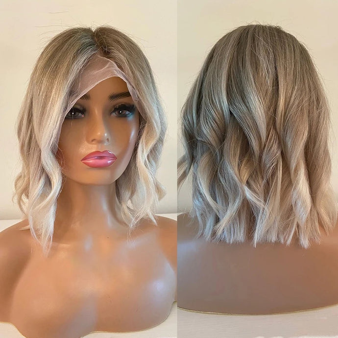 Ash Blonde Light Platinum Balayage Highlighted Human Hair Wig Short Wavy Full Lace Wigs HD 13x4/ 13x6/ Full Lace Lace Front Wig 180%