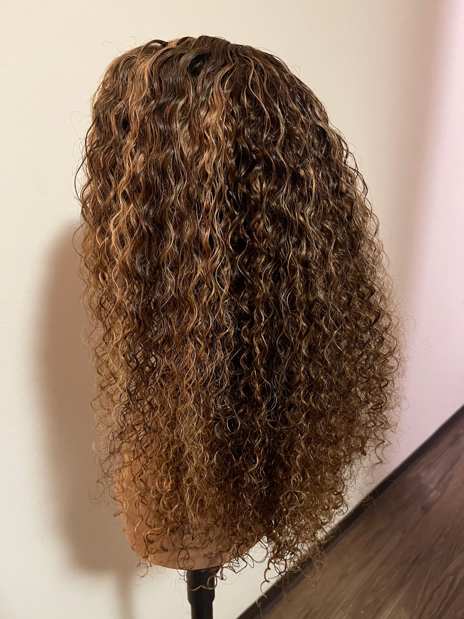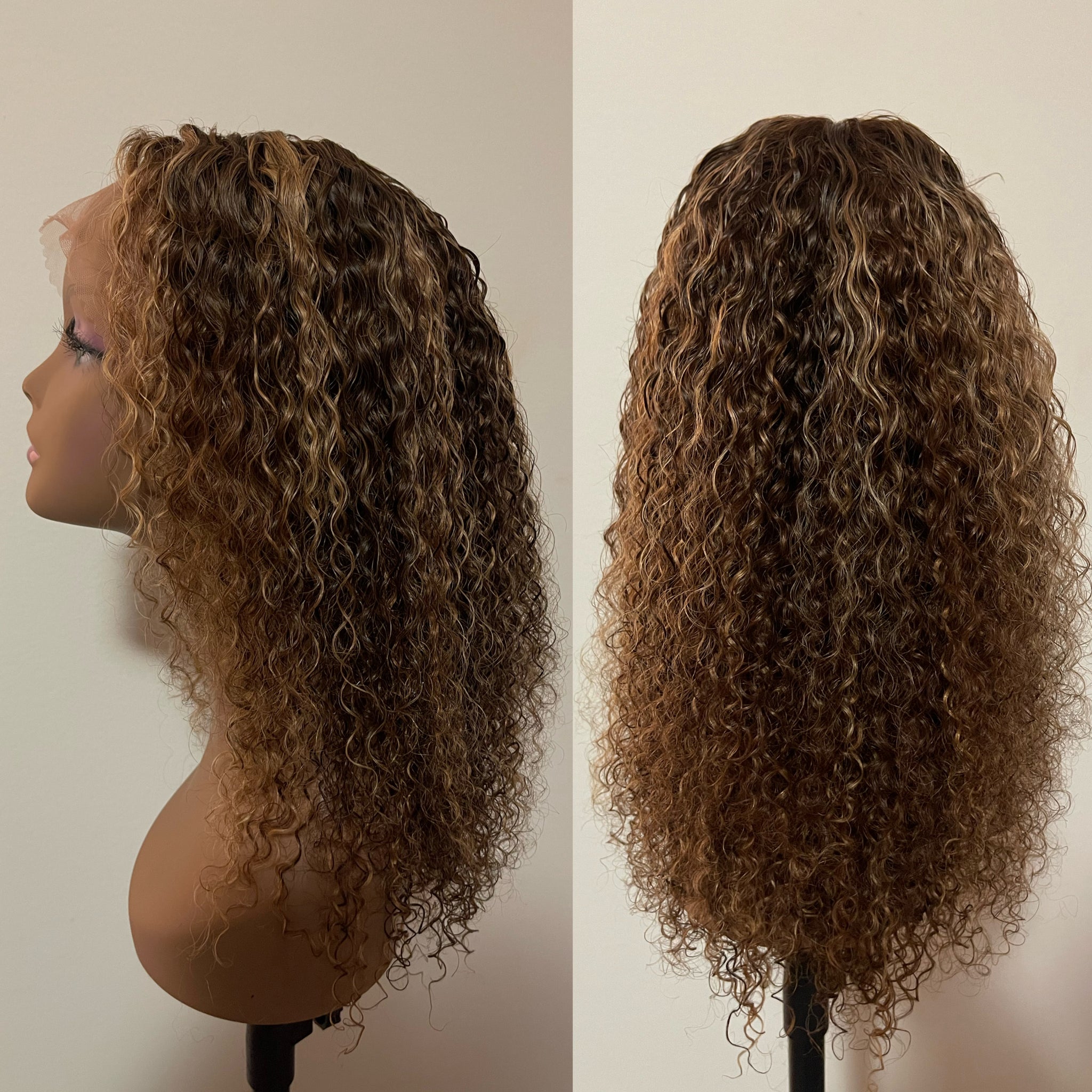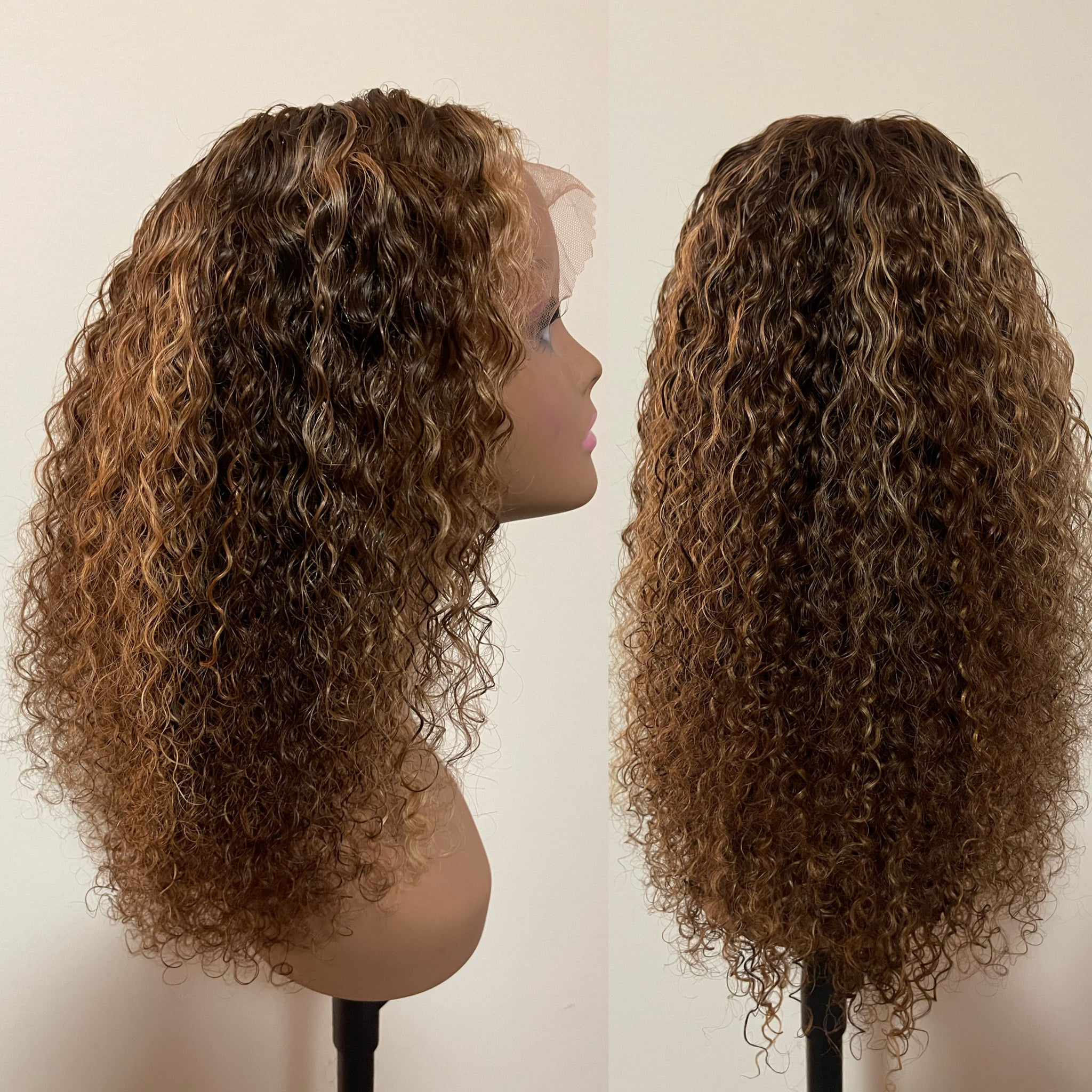 Honey Blonde Highlight 27 Deep Wave Lace Front Wig Deep Curly Human Hair Wigs Brazilian HD Preplucked 13x4/ 13x6 Lace Frontal Wig