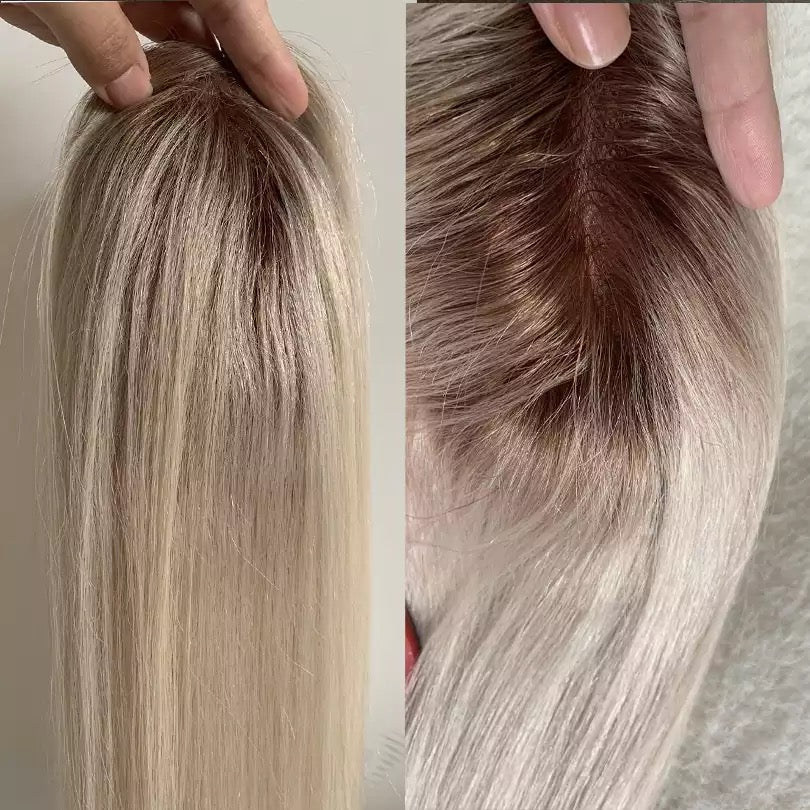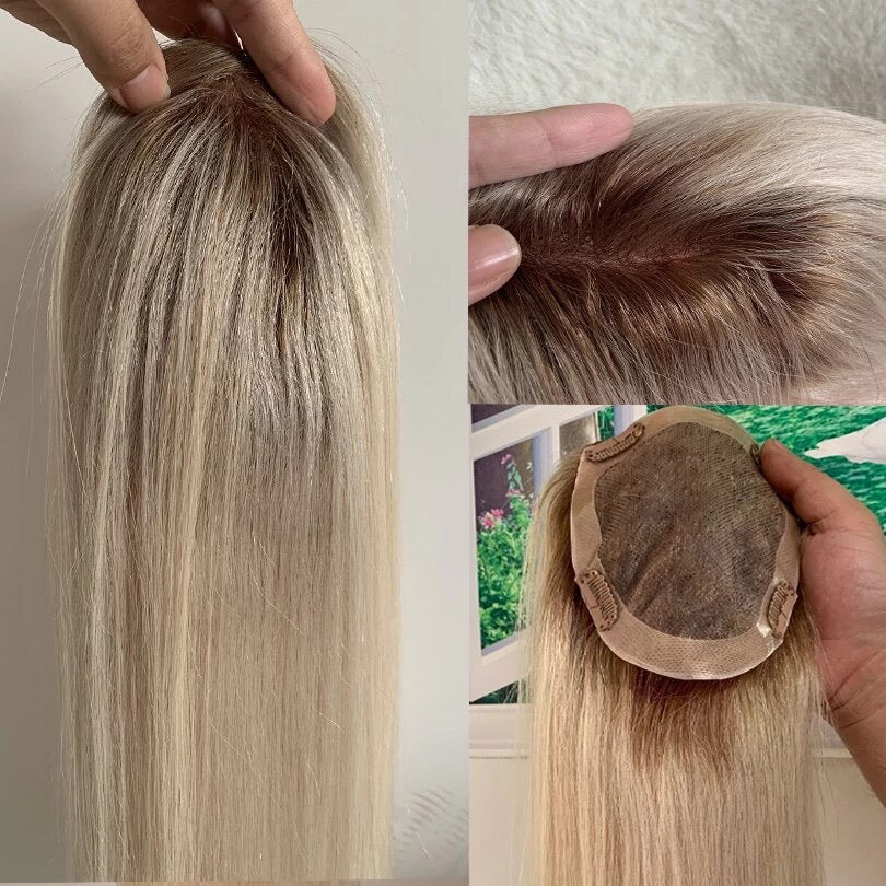 Ombre Ash Blonde Toupee Hair For Women Human Hair Topper Toupee 613 Closure European Remy Hair Top Piece