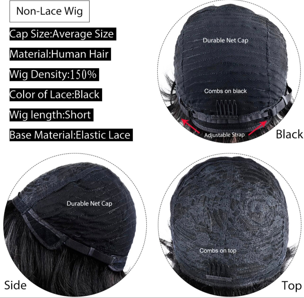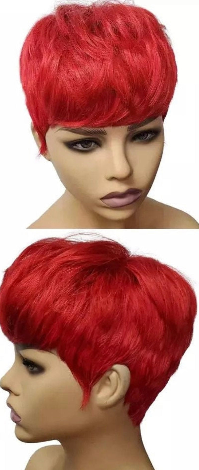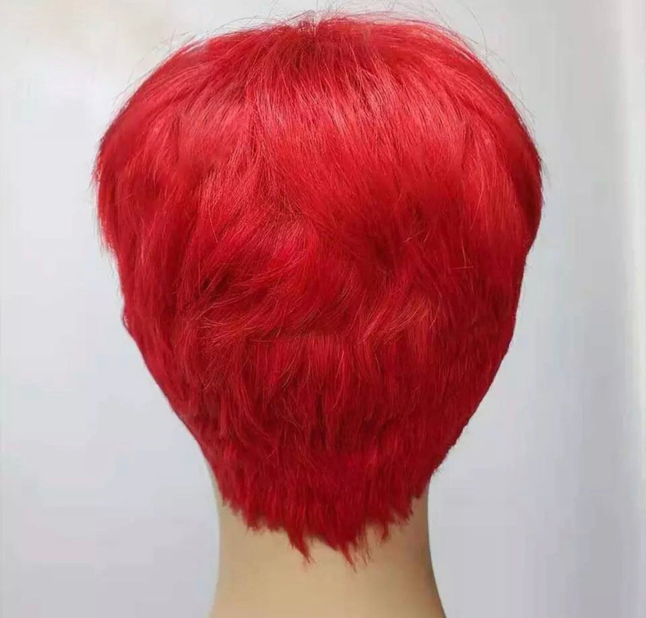 Red Color Short Human Hair Wigs Pixie Cut Wave Remy Brazilian Human Hair Machine Made Glueless Wig