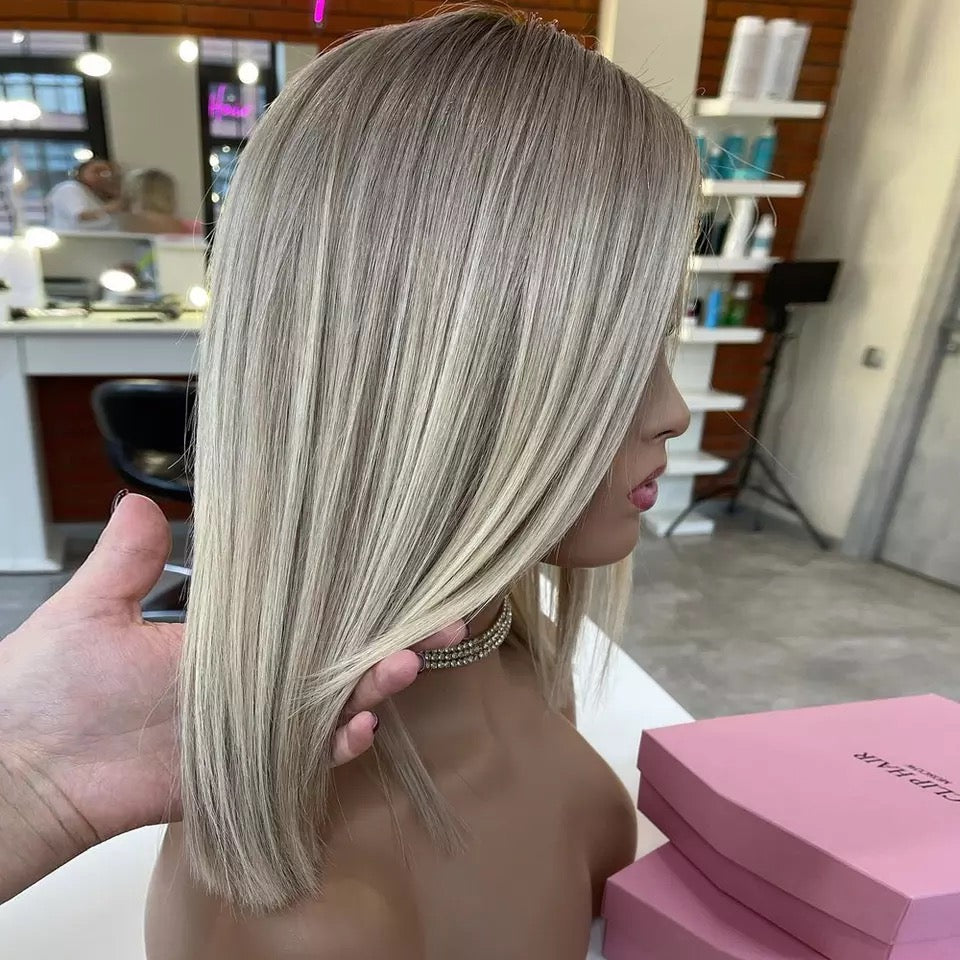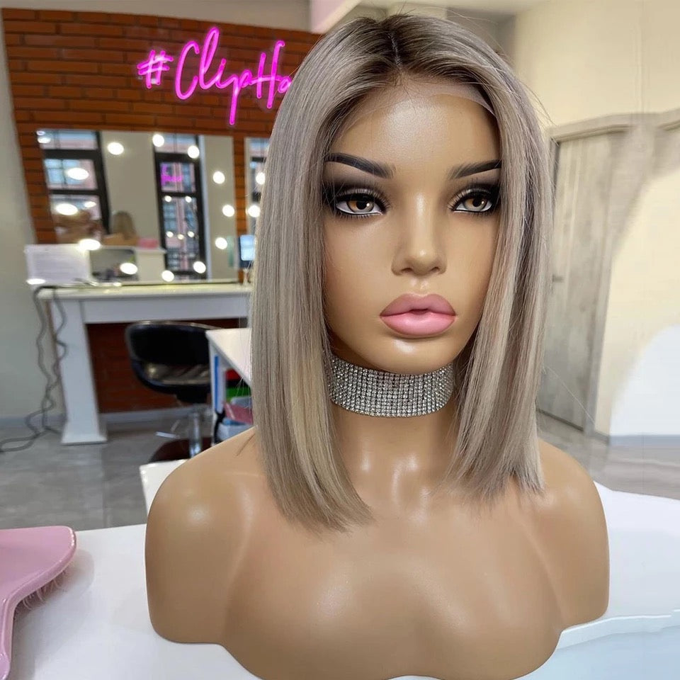 Virgin Hair Straight Bob Wig Ash Blonde Highlight Lace Front Wig 13x4/13x6 HD Dark Roots Ombre Human Hair Wigs